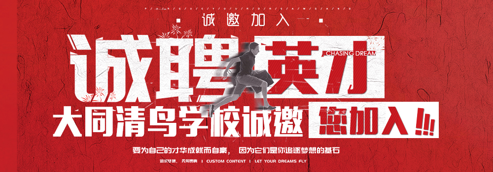 大同市清鳥精英教育培訓(xùn)學(xué)校招聘信息地址: http://m.yrnychina.com/zhiwei/company-5906.html 轉(zhuǎn)載請注明